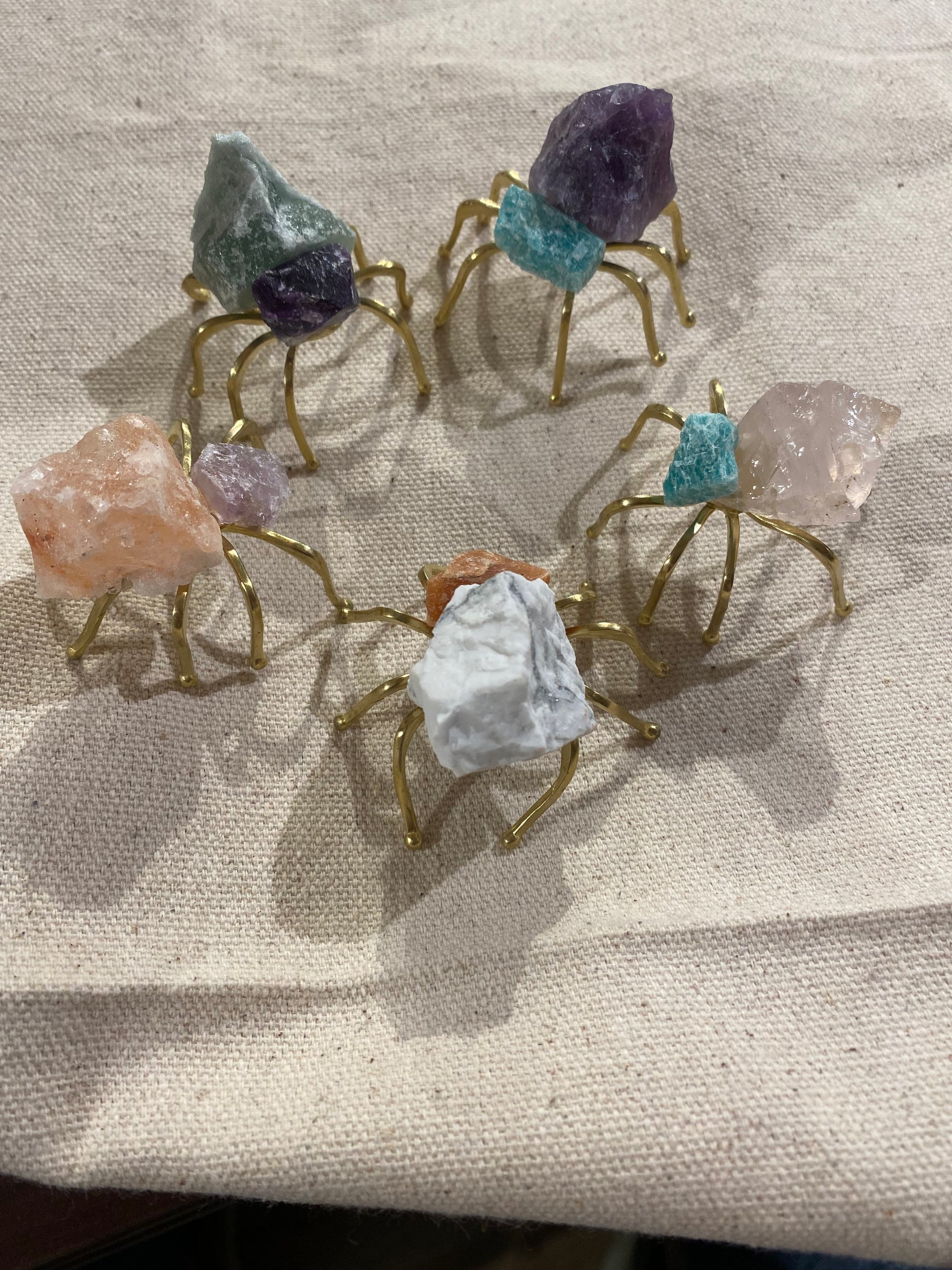 Hand crafted gemstone spiders by local artist Busted Button. Each little buddy is completely unique and makes a great addition to any desk, window sill or plant pot.