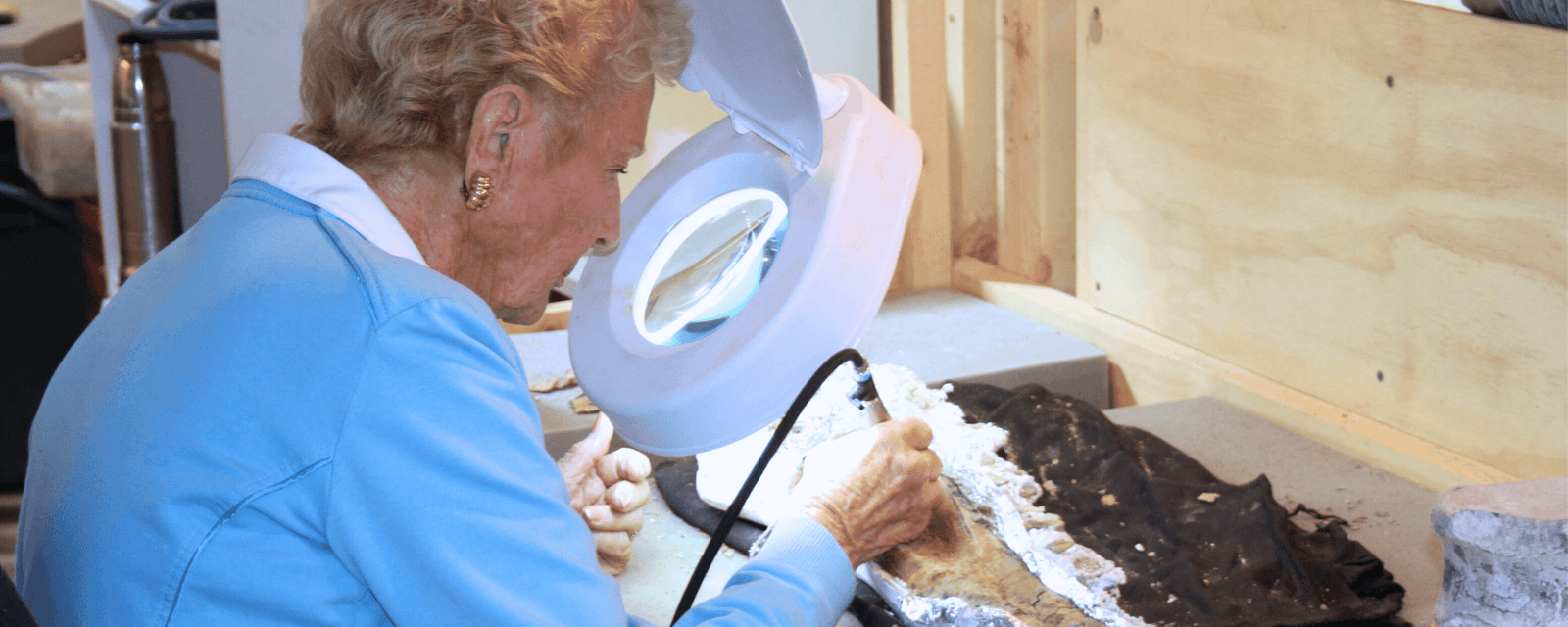 When a fossil is found it's covered in layers of rock, which needs to be carefully removed in order to see the full fossil. During this hands-on experience, participants get to learn how to take this rock layer off of real specimens under the trained guidance of our educating staff.